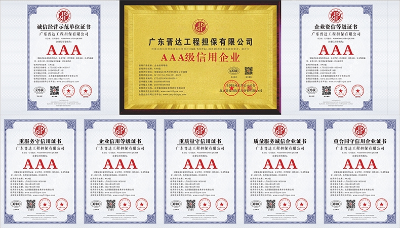 廣東晉達工程擔保有限公司是一家專注于保函業務辦理的公司, 主要經營范圍有:銀行保函、擔保公司保函、保險公司保函、投標保函、履約保函、預付款保函、質量保函、農民工工資保函、售電保函、關稅保函、廣告保函等各類保函辦理。資料齊全,快至當天可出保函。